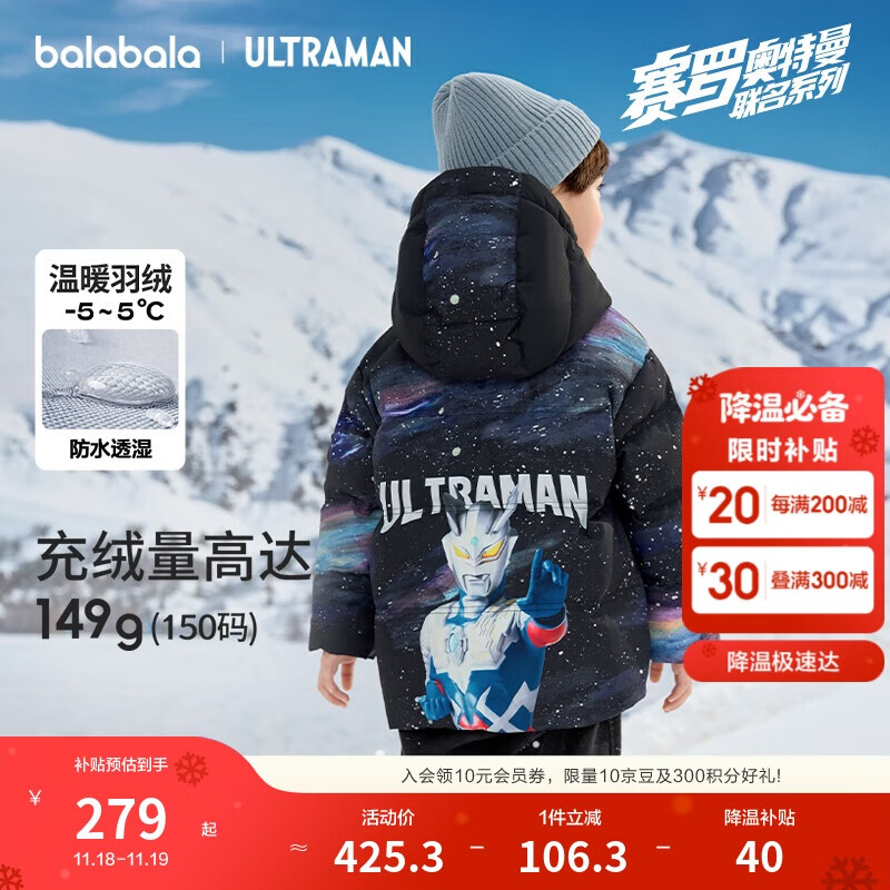 巴拉巴拉男童羽绒服冬装连帽外套潮【奥特曼IP】201424107116