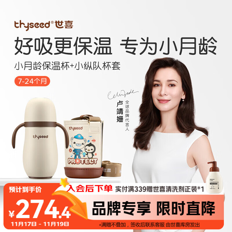 世喜婴儿保温杯幼儿小月龄316L不锈钢钢海底小纵队联名款学饮杯幼儿园