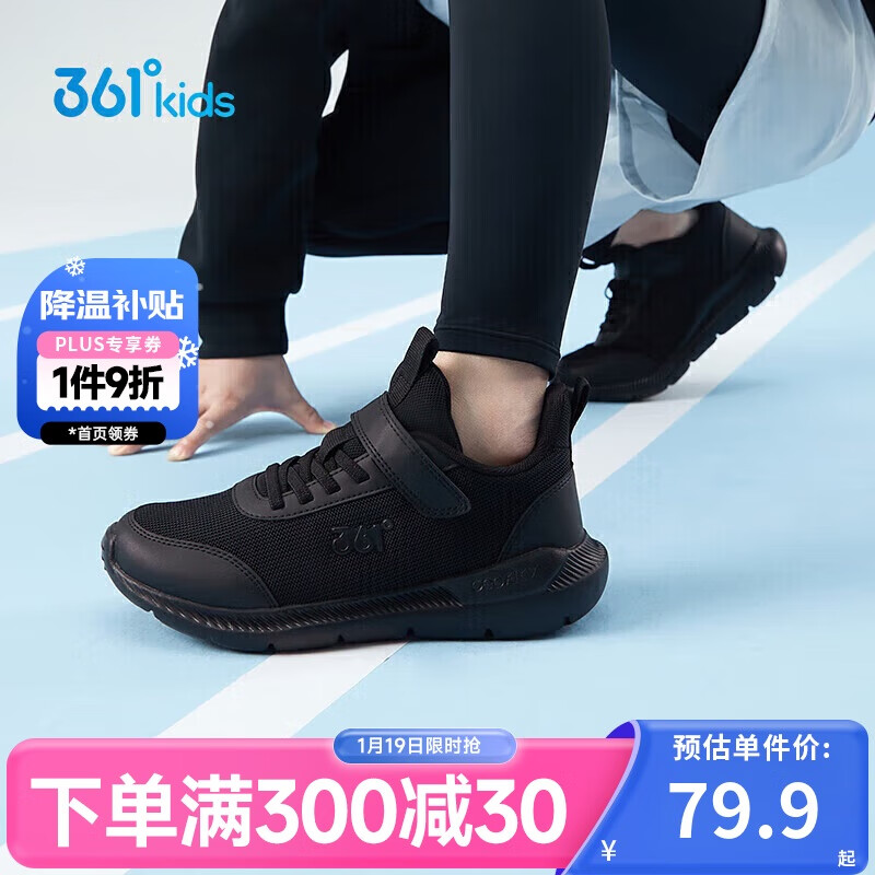 361°儿童运动鞋跑鞋男女童(3-12岁)防撞鞋头密网休闲跑鞋碳黑40