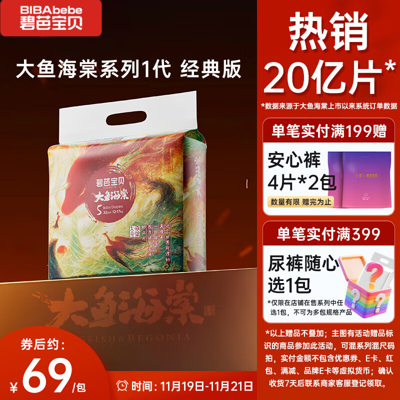 碧芭宝贝大鱼海棠纸尿裤XL32片(12-17kg)尿不湿 干爽透气大吸量 秋冬不闷