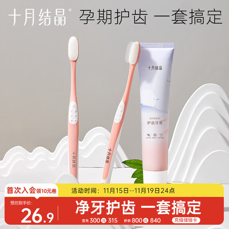 十月结晶准孕妇月子口腔护理套装硅胶软毛牙刷×2支+奇异果味牙膏1支
