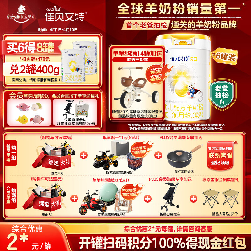 佳贝艾特(Kabrita)悦白婴幼儿配方羊奶粉3段800g*6 (1-3岁) 天然A2蛋白
