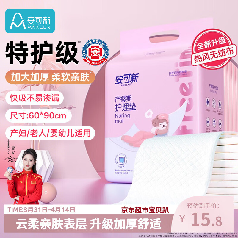 安可新孕产妇产褥垫护理垫10片成人隔水隔尿垫月经垫升级款尺寸60*90cm