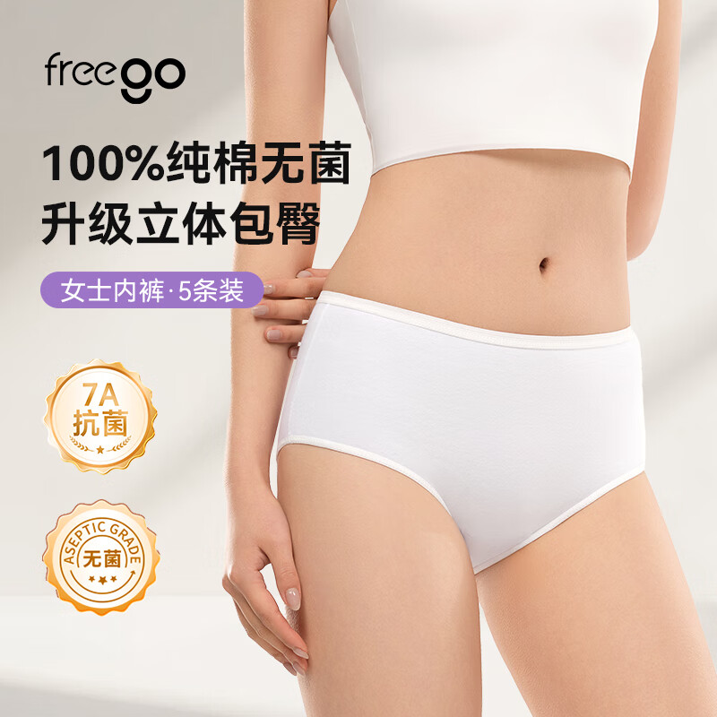 Freego一次性内裤女纯棉免洗5条独立装日抛灭菌旅行出差孕妇产妇白色L