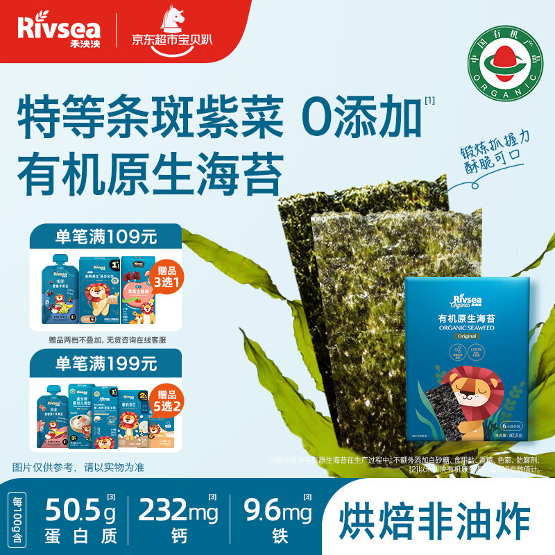 禾泱泱有机原生海苔片原味10.5g 儿童宝宝零食出游小零食无添加食用盐