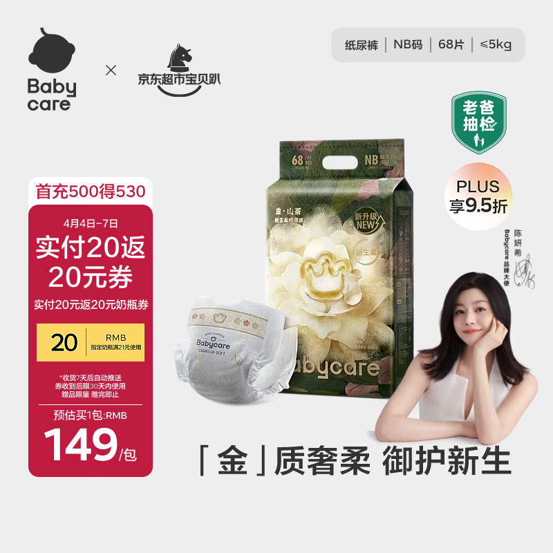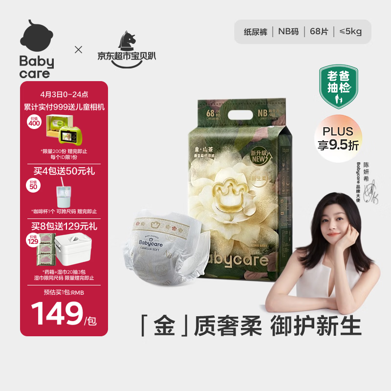 babycare金山茶花纸尿裤NB68片(<5kg)新生儿婴儿尿不湿超薄透气轻柔花苞裤