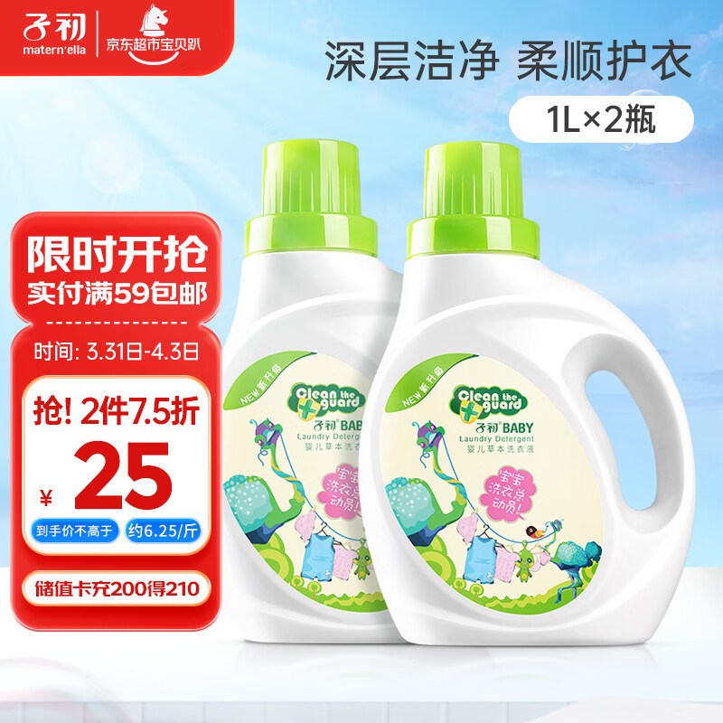 子初婴儿洗衣液新生儿宝宝专用儿童草本多效去渍洗衣液1L*2瓶全家适用