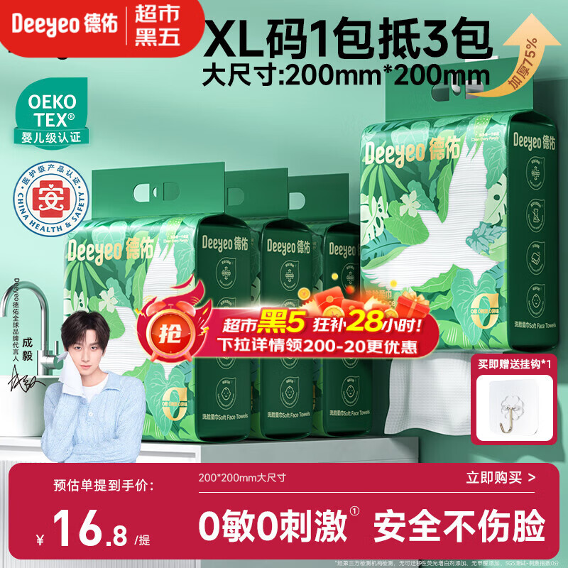 德佑洗脸巾壁挂式加大加厚一次性干湿两用棉柔洁面绵柔巾160抽*4提