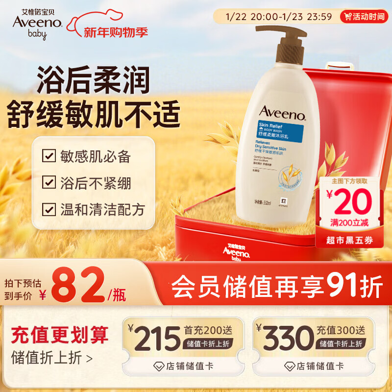 艾惟诺(Aveeno)艾维诺成人沐浴露温和无皂基 舒缓滋润燕麦沐浴乳(无香型)532ml