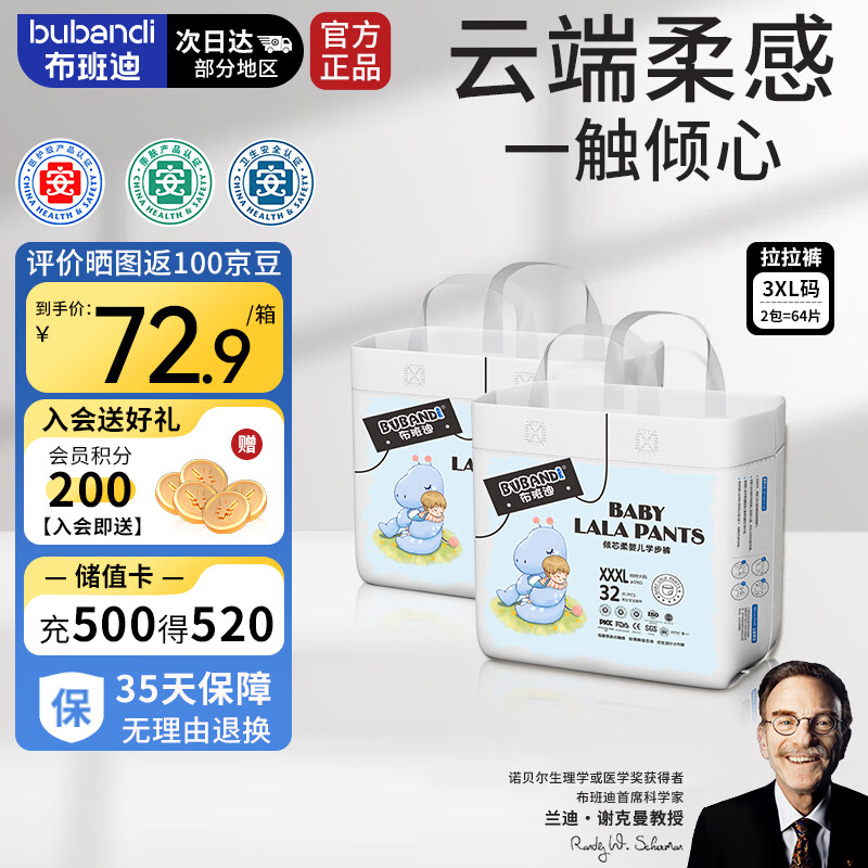 布班迪倾芯柔婴儿学步裤XXXL64片超薄干爽透气拉拉裤男女宝宝通用尿不湿