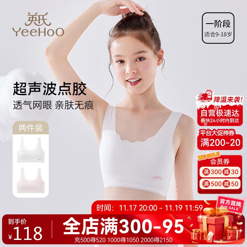 英氏儿童内衣一阶段网眼女童小背心小学生内衣9-12岁混色140
