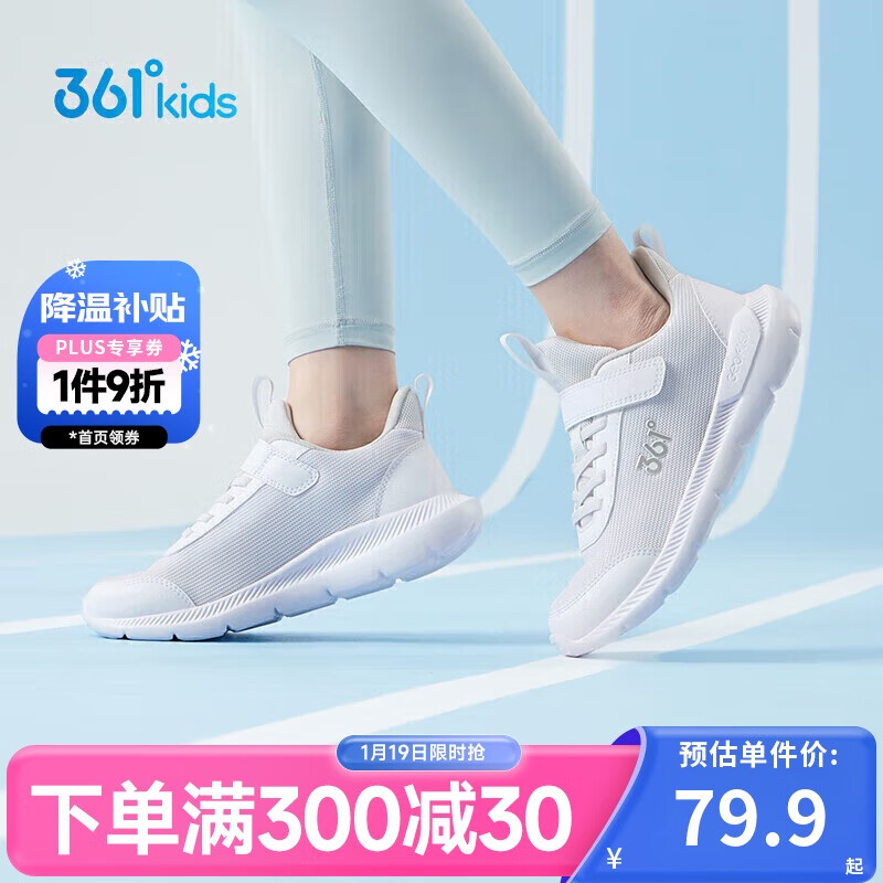 361°儿童运动鞋男女童(3-12岁)防撞鞋头密网休闲跑鞋 白 34