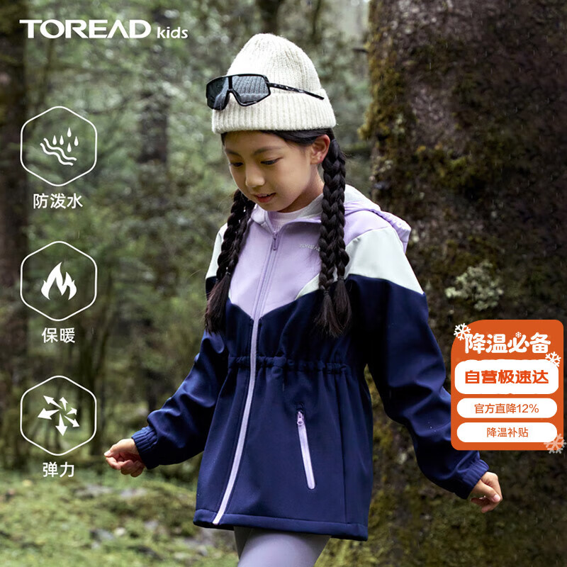 探路者(TOREAD)旗舰 儿童外套女中大童装秋冬季款保暖防风软壳运动服 风铃紫 160