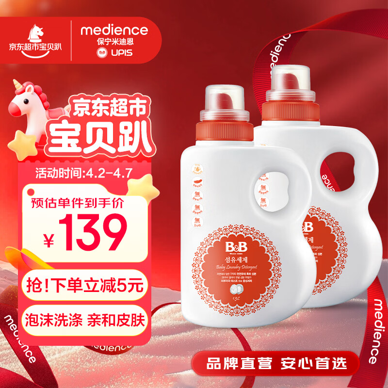 保宁(B&B)婴儿洗衣液宝宝儿童专用内衣裤洗衣液温和植萃桶装【两桶共6斤】