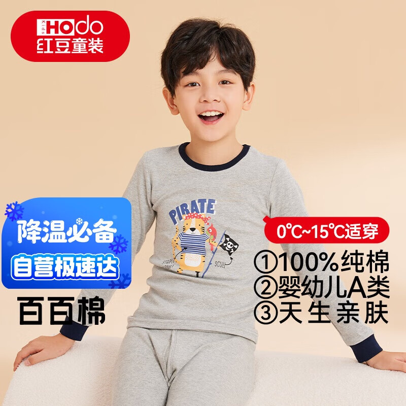 红豆儿童纯棉内衣套装男女童秋衣秋裤秋冬保暖低领棉毛衫M1209月灰120