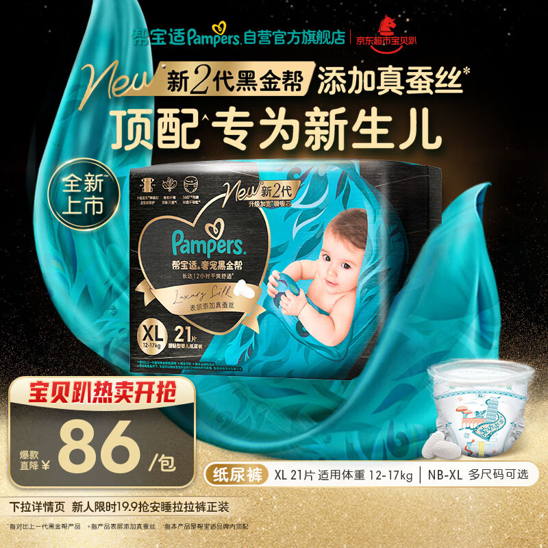 帮宝适新生儿顶配黑金帮纸尿裤婴儿尿不湿尿片添加真蚕丝XL21