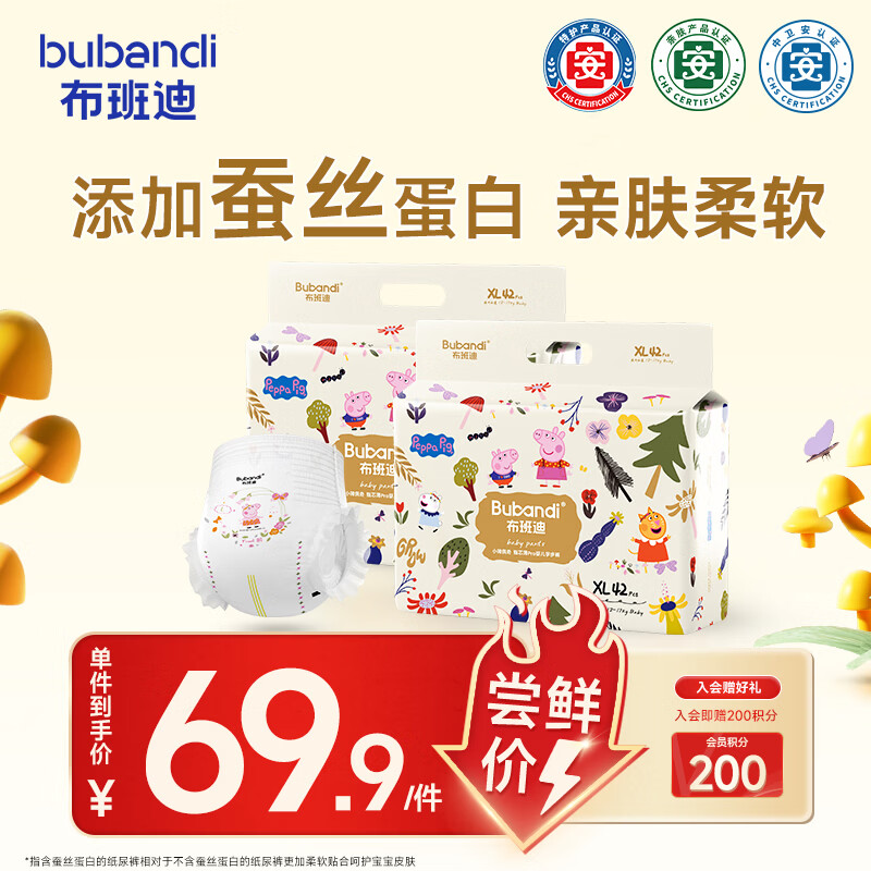 布班迪小猪佩奇甄芯薄Pro拉拉裤XL84片婴儿尿不湿蚕丝蛋白