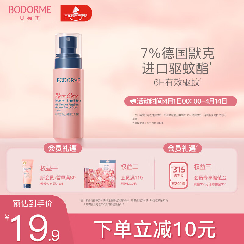 贝德美驱蚊喷雾基孔肯雅热驱蚊驱蚊无避蚊胺无香干扰蚊虫防蚊液蚊香75ml
