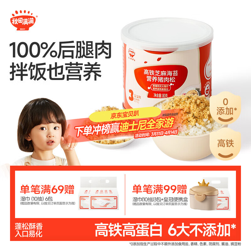 秋田满满 高铁海苔猪肉松80g 肉酥拌饭料_享婴儿宝宝儿童辅食食谱
