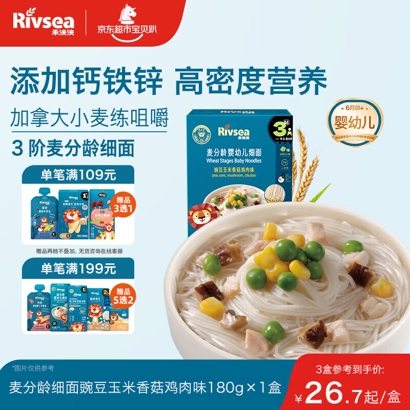 禾泱泱婴幼儿细面豌豆玉米味180g 含钙铁锌 宝宝面条辅食儿童早餐6月+