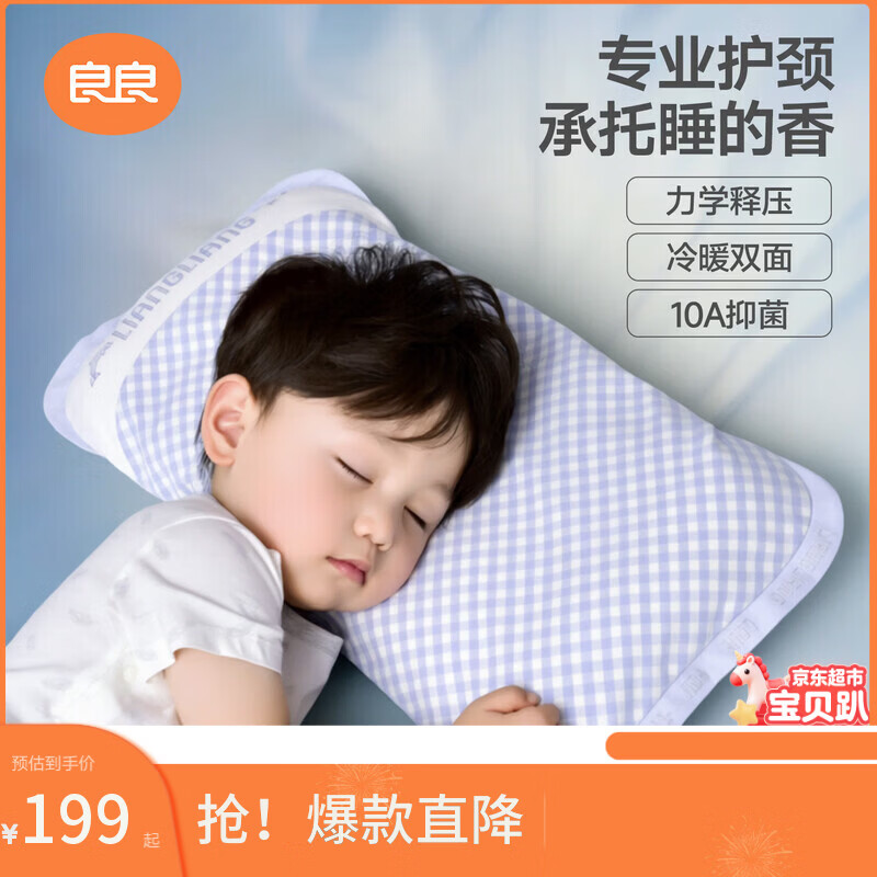 良良儿童枕头10-8-6岁小童透气3D分区天丝苎麻四季可用蓝色