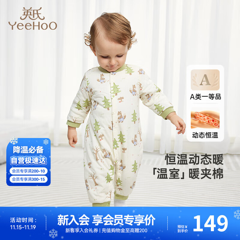 英氏(YEEHOO)夹棉连体衣动态恒温婴儿衣服秋冬保暖新生儿衣服精梳棉宝宝爬服