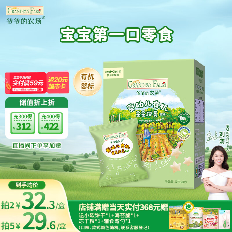 爷爷的农场有机婴幼儿星星泡芙原味30g 宝宝儿童零食 婴儿零食6-12个月