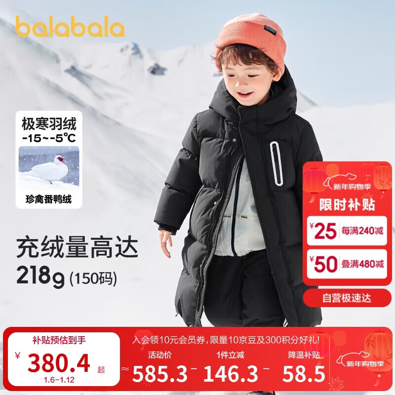 巴拉巴拉儿童羽绒服男童女童外套宝宝冬装童装中长款洋气208424107201