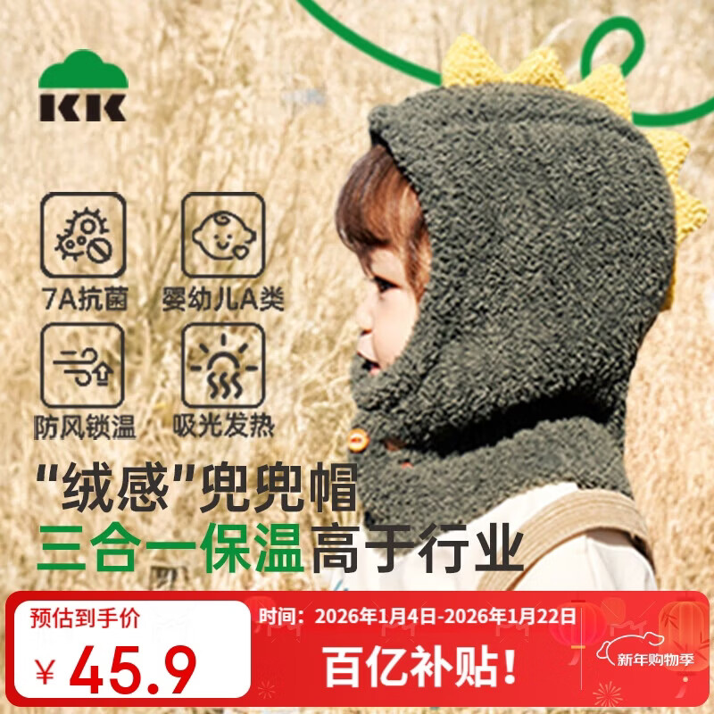 Kocotreekk树儿童帽子秋冬卡通保暖毛线帽男女童围脖一体帽宝宝可爱