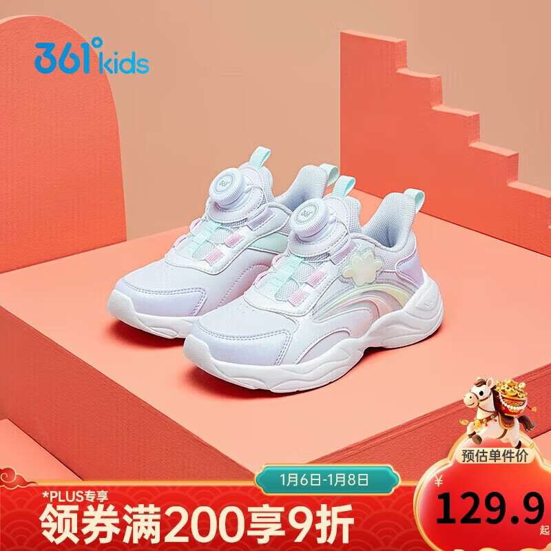 361°童鞋2025冬季小童女童旋纽扣跑鞋 白29