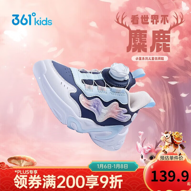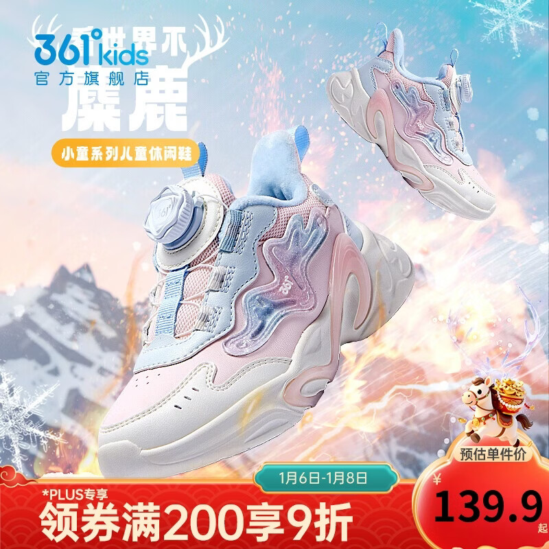 361°童鞋 儿童跑鞋四季男女童3-14岁全能旋钮扣轻弹跑鞋 粉38