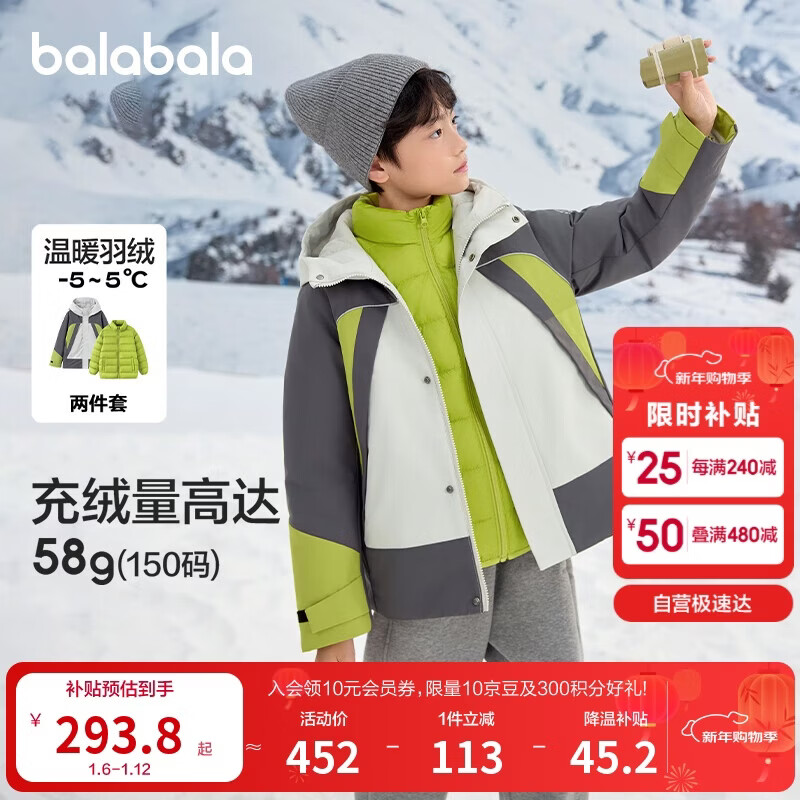 巴拉巴拉童装儿童羽绒服男童冬外套防护两件套潮24107114