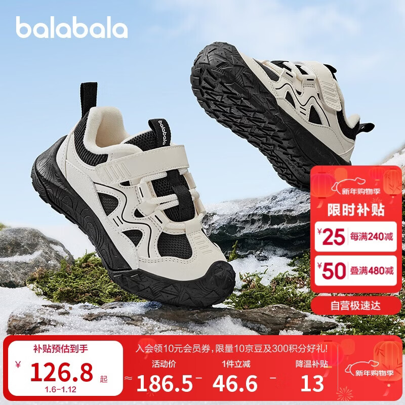 巴拉巴拉童鞋儿童学步鞋男童女童宝宝秋冬季户外稳步加绒防滑鞋子