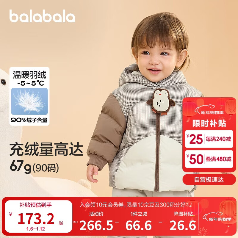 巴拉巴拉童装宝宝羽绒服三防男童冬装女童连帽外套萌趣2025新款面包服外套