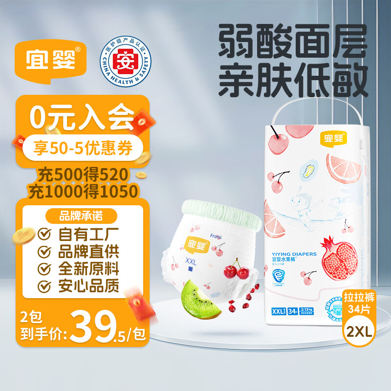 宜婴弱酸水果拉拉裤XXL34片(13.5-16kg)婴儿尿不湿学步裤超薄透气