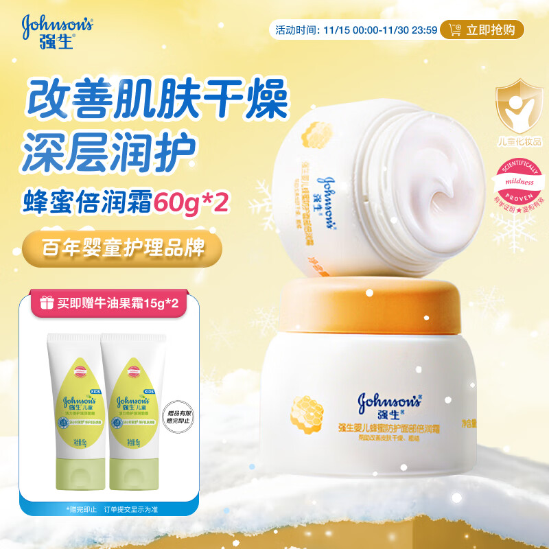 强生(Johnson)婴儿蜂蜜倍润霜60g*2 宝宝新生儿舒缓防皴裂干燥干红保湿乳面霜