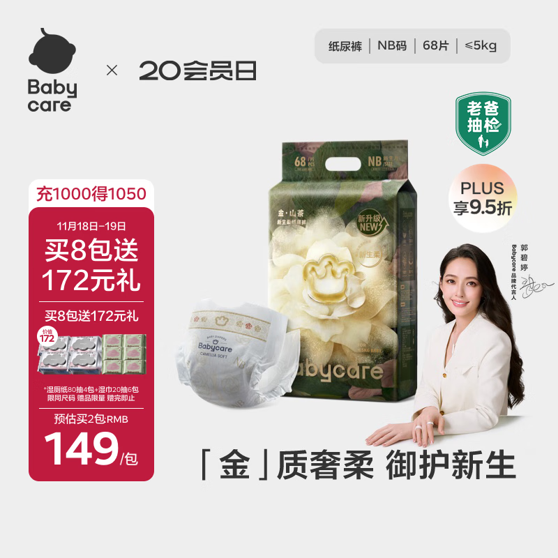 babycare金山茶花纸尿裤NB68片(<5kg)新生儿婴儿尿不湿超薄透气轻柔花苞裤