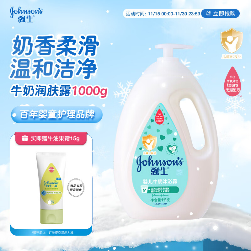 强生(Johnson)婴儿牛奶沐浴露1000g 宝宝儿童青少年沐浴保湿乳液全家可用大容量