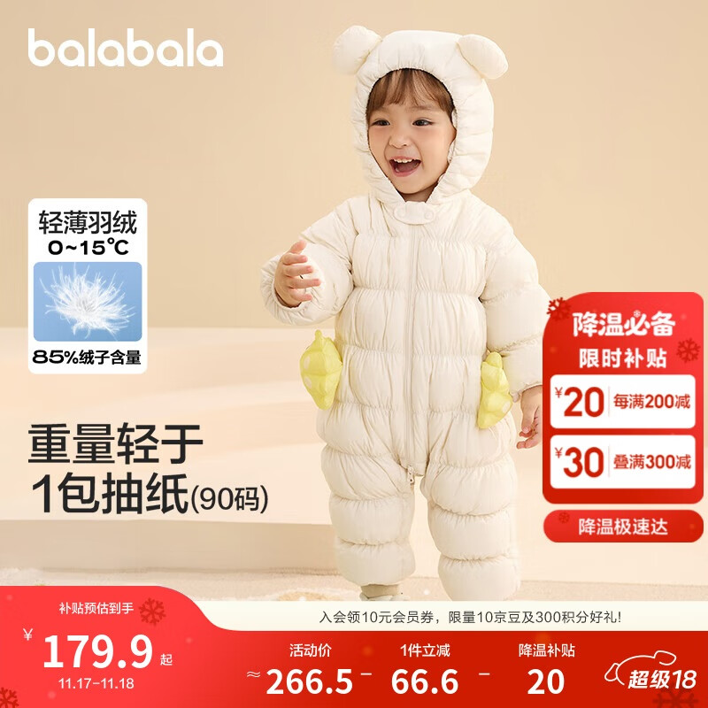 巴拉巴拉婴儿羽绒连体衣男女童冬季哈衣萌趣200424120201