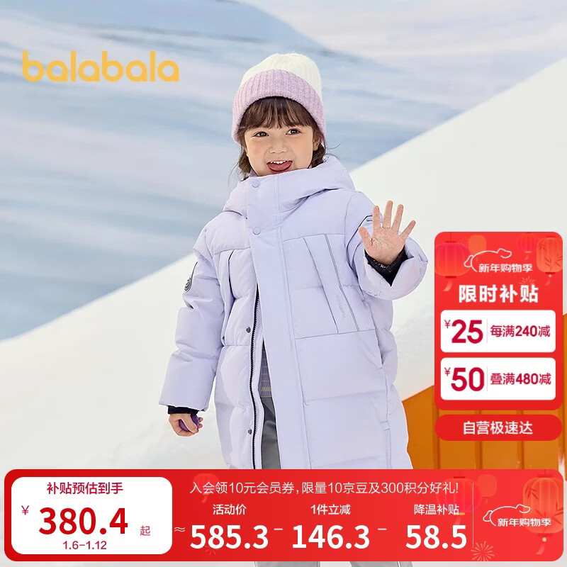 巴拉巴拉儿童羽绒服中长款冬加厚外套男女童2025连帽亲子装保暖防风防泼水