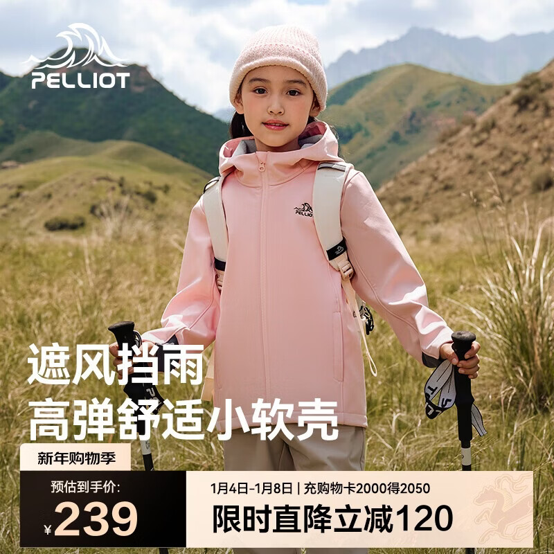 伯希和(Pelliot)户外儿童软壳衣冬季加绒保暖防风防水童装运动外套134306146粉160