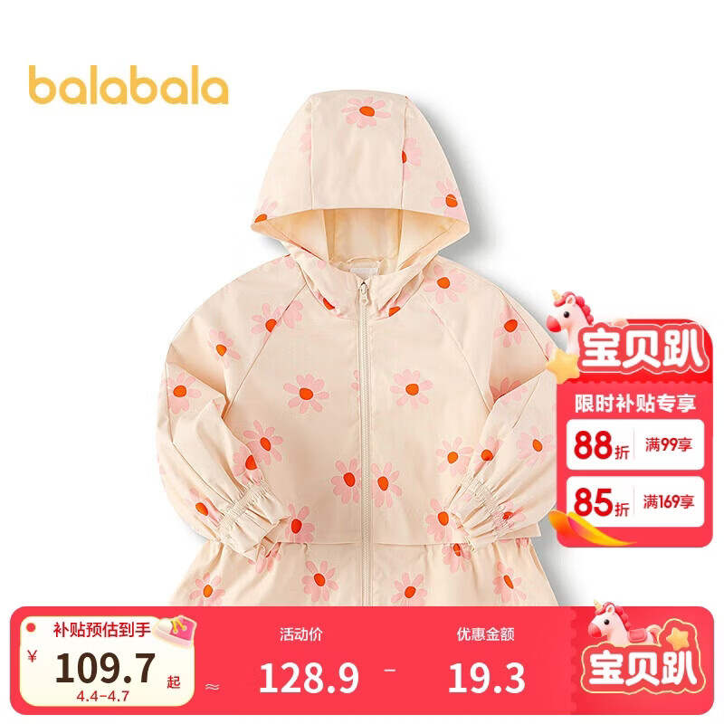 巴拉巴拉童装女童软壳衣假两件连帽外套2025春装【商场同款】201125105012