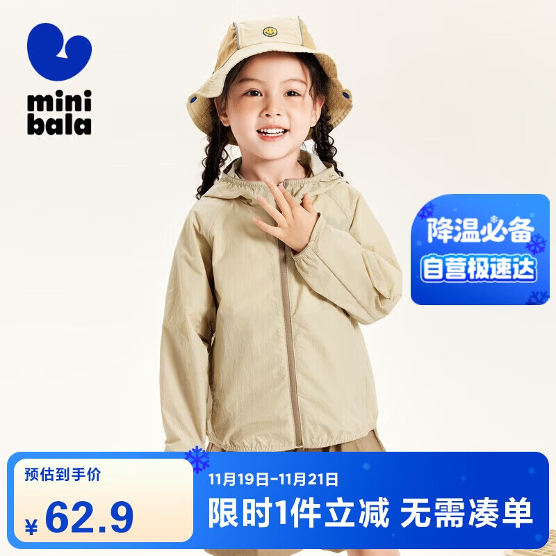 迷你巴拉(minibala)男女童亲子夏季凉感防晒外套连帽亲子防晒衣UPF50+ 浅驼50006 165