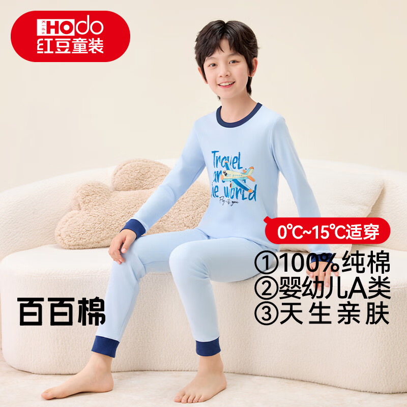 红豆纯棉秋衣秋裤中大童秋冬内衣套装儿童居家睡衣M1087飞机旅行150