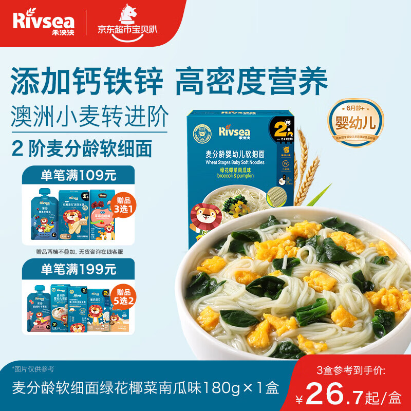 禾泱泱婴幼儿软细面绿花椰菜味180g 钙铁锌麦分龄面条6月+