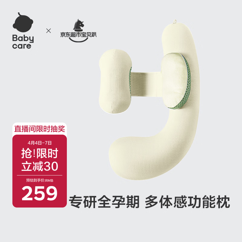 babycare孕妇枕护腰侧睡U型靠枕芯 多功能托腹抱枕 砂石抹茶(不含头枕)