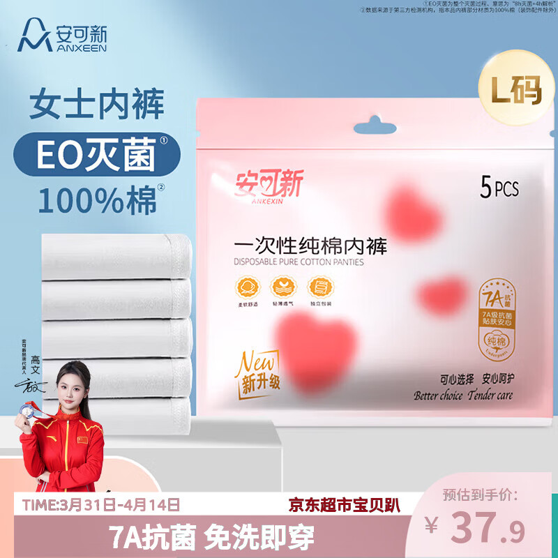 安可新纯棉一次性内裤女全棉免洗15条独立装孕产妇生理期旅行出差XXL码