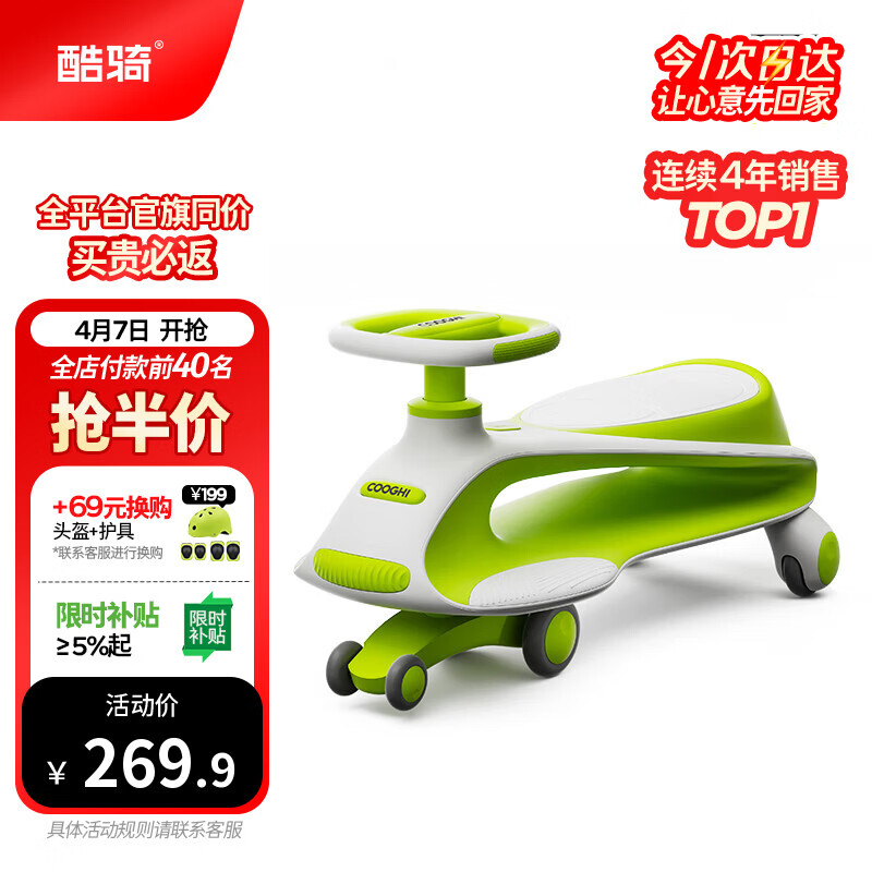 酷骑儿童扭扭车溜溜车可坐大人静音耐磨万向轮周岁礼物1-8岁经典绿