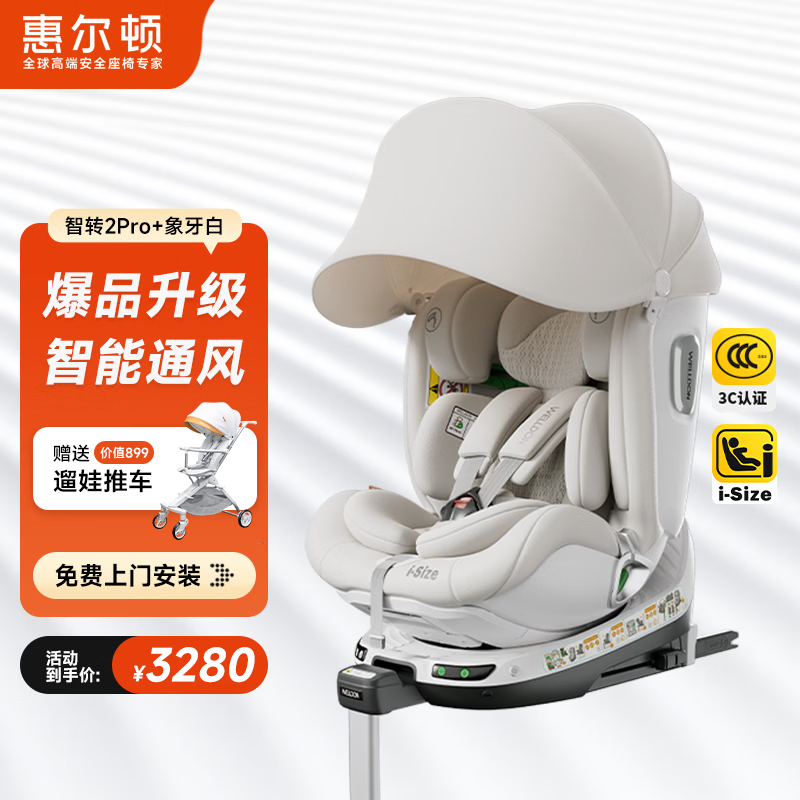 惠尔顿(Welldon)智转2PRO+儿童安全座椅0-7岁i-Size智能通风新生婴儿宝宝车载专用