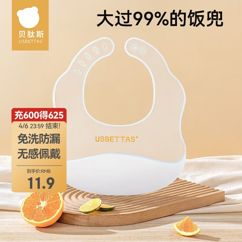 贝肽斯宝宝吃饭围兜春秋婴儿围嘴辅食饭兜超软硅胶儿童防水防油饭晴空蓝